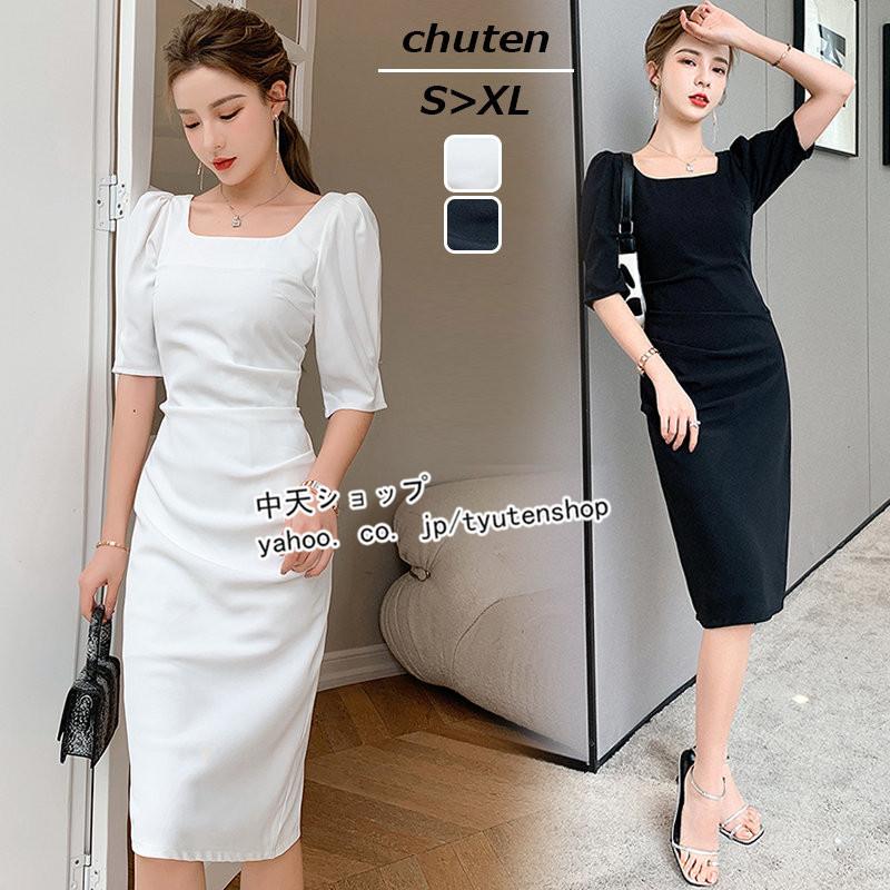 タイトワンピース 夏ワンピース膝丈 レディース30代40代 半袖ワンピース スクエアネック パフスリーブ 無地 お呼ばれ 着痩せ パーティードレス 飲み会 結婚式 Hxyfs 中天ショップ 通販 Yahoo ショッピング